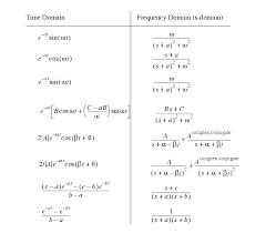 The table that is provided here is not an inclusive table, but does include most of the commonly used laplace transforms and most of the commonly needed formulas pertaining to laplace transforms. What are the steps of solving an ode by the laplace transform? Tsin(at) (22) 2 2as sa+ 10. More images for laplace transform table » How are laplace transforms used in the engineering field? Jul 01, 2016 · table of laplace transforms f(t) lf(t) = f(s) 1 1 s (1) eatf(t) f(s a) (2) u(t a) e as s (3) f(t a)u(t a) e asf(s) (4) (t) 1 (5) (t stt 0) e 0 (6) tnf(t) ( 1)n dnf(s) dsn (7) f0(t) sf(s) f(0) (8) fn(t) snf(s) s(n 1)f(0) (fn 1)(0) (9) z t 0 f(x)g(t x)dx f(s)g(s) (10) tn (n= 0;1;2;:::) n! The following table of laplace transforms is very useful when solving problems in science and engineering that require laplace transform. The laplace transform is used to quickly find solutions for differential equations and integrals. Usually we just use a table of transforms when actually computing laplace transforms. Properties of laplace transforms number time function laplace transform property 1 αf1(t)+βf2(t) αf1(s)+βf2(s) superposition 2 f(t− t)us(t− t) f(s)e−st; U(t — 2tr) sin t 18. Cos(at) 22 s sa+ 9. Dec 17, 2018 · table of laplace transformations.